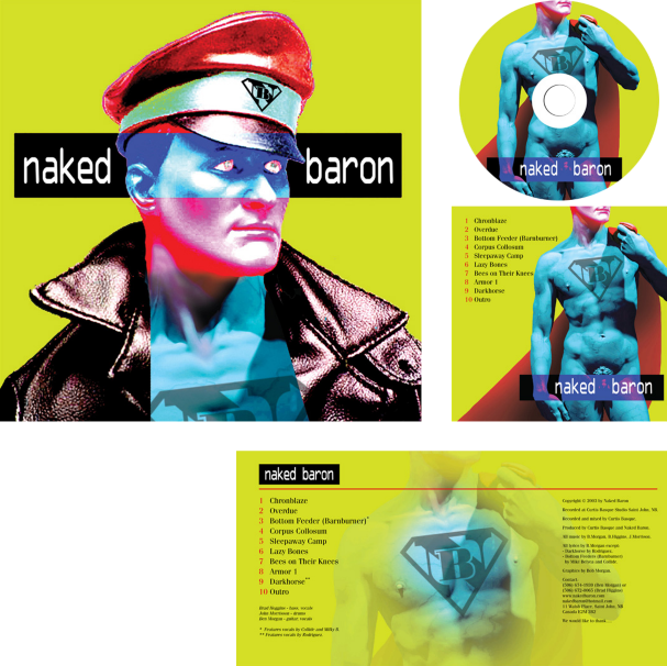 Photo illustrations, CD sleeve and label concept for Naked Baron.
