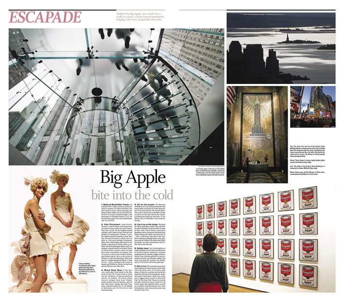 of their travel section called Escapade. Layout by Lucie Lacava. Journalist: Kate Wallace.